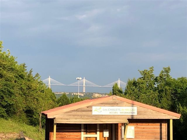 Résidence de chalets sur les berges du Tarn face au Viaduc de Millau. Composé de 15 chalets de 4 à 5 personnes.